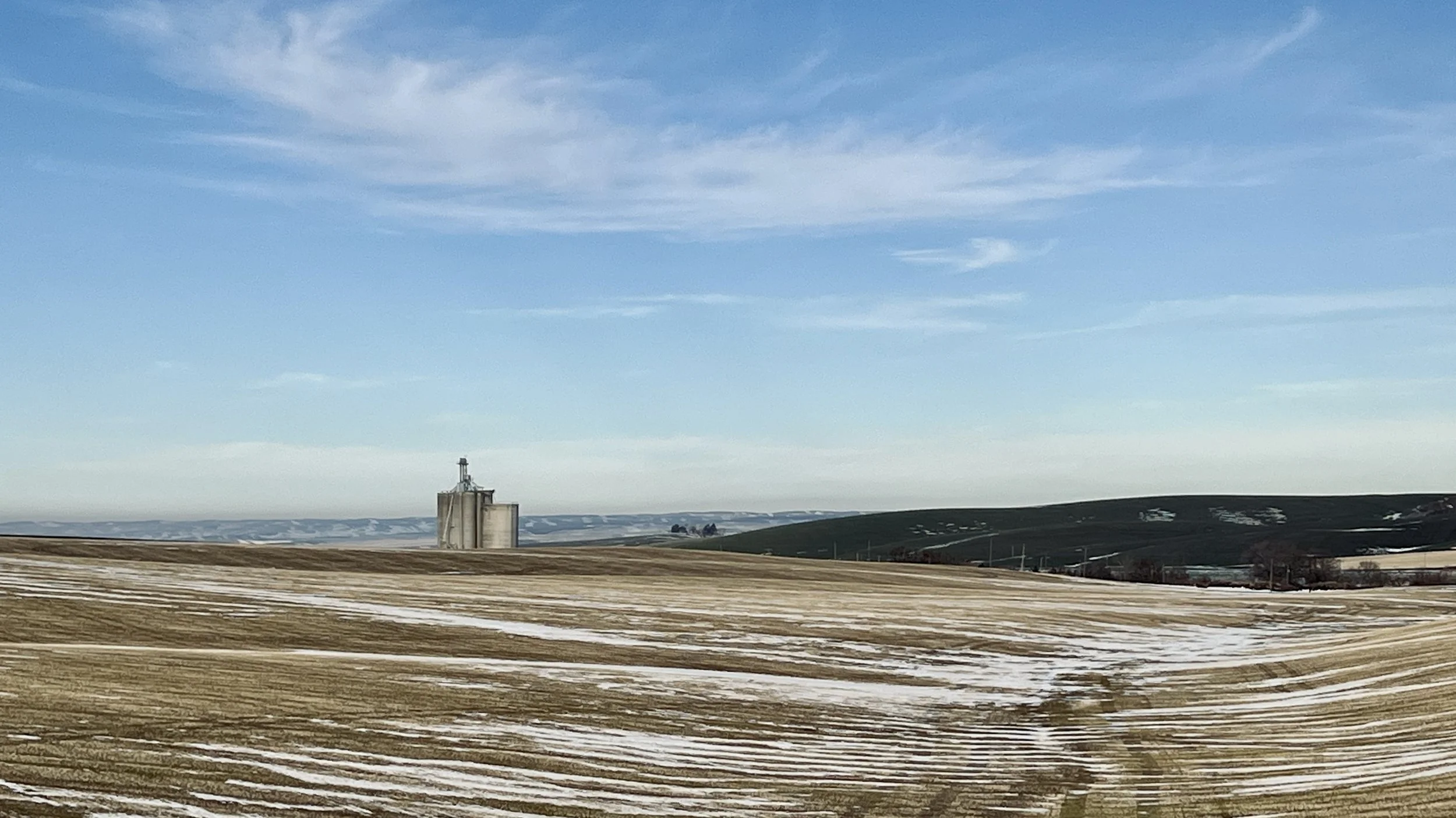 Ironically, we drive away from the hotel into a beautiful day - bright sun and blue skies - and into the landscape of empty, rolling hills that are becoming increasingly snow covered. In the summer, these must be vast fields of wheat, but given the time of year they have become a patchwork of soft yellows, browns and white that are penned in by the distant ridges of the mountains that we’re heading towards.